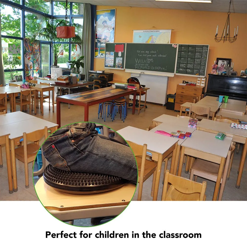 By sitting or standing on the wobbly cushion, your body is constantly and unconsciously looking for the right balance.
